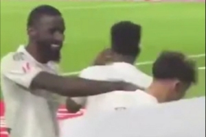 體育資訊3月15日訊 《阿斯報(bào)》曬視頻,發(fā)現(xiàn)呂迪格在慶祝居萊爾進(jìn)球時(shí),下意識打了皮塔奇一下。