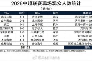 中超第2輪現(xiàn)場觀眾人數(shù)↓