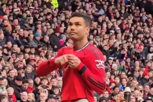 名記羅馬諾曬出視頻,卡塞米羅在進(jìn)球后頻頻指向隊(duì)徽。在賽后曼聯(lián)球迷們高唱卡塞米羅再留一年。