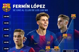 體育資訊3月17日訊 德國轉(zhuǎn)會市場更新社媒動態(tài),曬出了巴薩中場費(fèi)爾明身價變化圖。