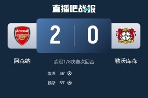 體育資訊3月18日訊 歐冠1/8決賽次回合,阿森納主場(chǎng)2-0擊敗勒沃庫(kù)森,兩回合總比分3-1淘汰對(duì)手,晉級(jí)八強(qiáng)。