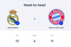 皇馬與拜仁在歐冠歷史上交手過(guò)28次,皇馬13勝4平11負(fù)占據(jù)上風(fēng),皇馬歷史上15次獲得歐冠冠軍,排列第一;拜仁6次奪冠,排名第三。