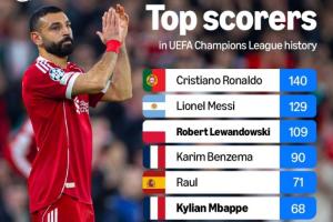 體育資訊03月19日訊 本賽季歐冠1/8決賽全部結束,外媒統(tǒng)計了歐冠歷史射手榜,C羅140球位居榜首,梅西、萊萬分列二三。薩拉赫、凱恩均達成各自的歐冠生涯50球,躋身榜單前十。