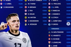 德轉(zhuǎn)更新德國隊(duì)身價(jià):維爾茨1.1億歐居首,卡爾6000萬歐隊(duì)內(nèi)第三