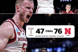 這是內(nèi)布拉斯加大學在NCAA瘋?cè)氖讋?,此前他們八次首輪出局?/p>