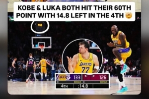 本場(chǎng)比賽,東契奇爆砍60分,而上一位得到60分的湖人球員,還是2016年退役戰(zhàn)的科比。