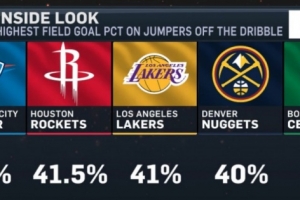 體育資訊3月21日訊 今天,美媒曬出了本賽季運(yùn)球后跳投命中率最高前五,具體為:
