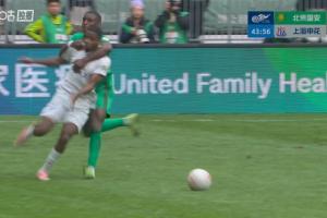 體育資訊03月21日訊 中超第3輪,北京國安vs上海申花。比賽第43分鐘,法比奧前場丟球后反搶,戰(zhàn)術(shù)犯規(guī)一把拽住馬納法,被馬寧出示黃牌警告。