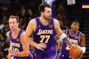 賽后,湖人官方發(fā)布贏球海報(bào),封面人物為東契奇和肯納德。