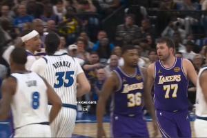 比賽第三節(jié),湖人當(dāng)家球星盧卡·東契奇和魔術(shù)中鋒戈加·比塔澤發(fā)生口角,最后雙方均被裁判吹罰技犯。