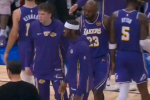 GIF-詹姆斯等人湊上前聽東契奇與裁判教練