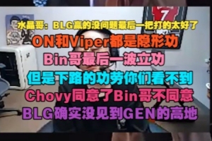水晶哥:BLG贏的沒問題最后一把打的太好了,ON和Viper都是隱形功,Bin哥最后一波立功,但是下路的功勞你們看不到,Chovy同意了Bin哥不同意。