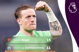 本賽季英超零封榜:拉亞15場(chǎng)居首 皮克福德、多納魯馬11場(chǎng)并列第二