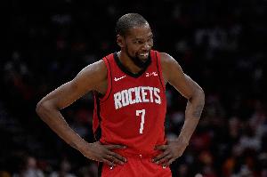 上半場比賽中,火箭外線手感十分糟糕,直到第二節(jié)還剩三分40秒才由杜蘭特命中第一記三分。