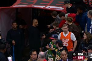 比賽最后時(shí)刻,杜蘭特一個(gè)不輕不重的推人被吹進(jìn)攻犯規(guī),烏度卡隨后怒噴裁判被驅(qū)逐,賽中,阿門(mén)在跑動(dòng)時(shí)打到塞克斯頓面部吃到惡犯;