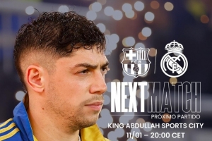 皇馬官方社媒曬出海報,預(yù)熱這場國家德比,隊內(nèi)中場巴爾韋德單人出鏡。