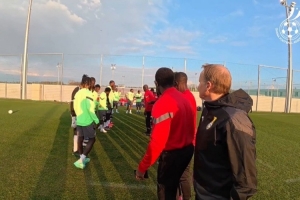 曼城前鋒塞梅尼奧來(lái)到加納國(guó)家隊(duì)報(bào)到,隊(duì)友們列成兩排,以拍打的方式對(duì)他表示祝賀。
