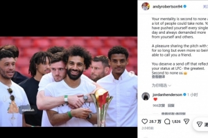 體育資訊3月25日訊 薩拉赫官宣賽季結(jié)束后離隊(duì),他的利物浦隊(duì)友羅伯遜通過(guò)社交媒體送上告別。