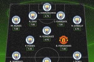 體育資訊1月17日訊 本輪英超曼市德比即將打響,數(shù)據(jù)網(wǎng)站W(wǎng)hoscored也盤點了兩支球隊本賽季英超場均評分最高陣容,其中曼城10人入選,具體如下: