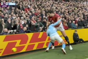 體育資訊01月17日訊 曼市德比第20分鐘,馬奎爾護(hù)球出底線,B席逼搶下兩人雙雙倒地。