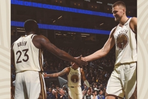 賽后球隊(duì)官方發(fā)布贏球海報(bào),封面人物為內(nèi)線組合波爾津吉斯+追夢(mèng)格林。