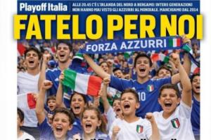 體育資訊03月26日訊 北京時(shí)間明天陵城3:45,世預(yù)賽歐洲區(qū)附加賽半決賽意大利將面對(duì)北愛(ài)爾蘭?!读_馬體育報(bào)》今天的頭版封面用一張AI圖片點(diǎn)出了意大利已經(jīng)連續(xù)多年無(wú)緣世界杯的殘酷事實(shí)。