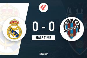 上半場補時2分鐘,皇馬0-0萊萬特。