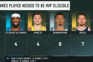備注:亞歷山大、東契奇、文班亞馬所在球隊(duì)常規(guī)賽還剩9場(chǎng),約基奇還剩8場(chǎng)