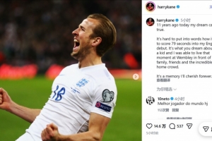 體育資訊3月27日訊 英格蘭前鋒凱恩在社交媒體上發(fā)文,紀(jì)念自己11年前的英格蘭隊(duì)首秀時(shí)刻。