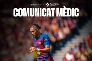 拉菲尼亞已返回巴塞羅那,開(kāi)始接受相關(guān)治療。預(yù)計(jì)康復(fù)期為五周。