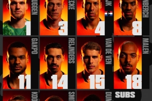 1-維爾布魯根、3-范黑克、4-范戴克、8-赫拉芬貝赫、11-加克波、14-賴因德斯、15-范德芬、18-馬倫、20-庫普梅納斯、21-斯米特、22-鄧弗里斯