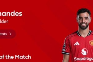 本場比賽B費發(fā)揮出色,送出一次助攻,此外還有6次關(guān)鍵傳球,賽后當(dāng)選英超官方球迷票選全場最佳球員。