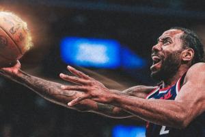 比賽第末節(jié),快船當家球星科懷·倫納德中距離干拔命中砍下本場第21分!