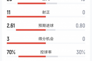 預(yù)期進球:2.61-0.80
