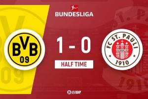 體育資訊1月17日訊 北京時(shí)間1月17日22:30,德甲第18輪,多特蒙德坐鎮(zhèn)伊杜納信號(hào)公園球場(chǎng)迎戰(zhàn)圣保利。上半場(chǎng),布蘭特射門(mén)被瓦爾門(mén)線(xiàn)解圍,施洛特貝克、阿德耶米犯規(guī)染黃,補(bǔ)時(shí)階段,布蘭特破門(mén)打破場(chǎng)上僵局。半場(chǎng)戰(zhàn)罷,多特蒙德暫1-0圣保利!
