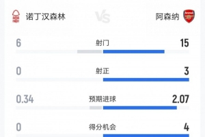 體育資訊1月18日訊 本輪英超,阿森納0-0客平諾丁漢森林。雙方全場重點(diǎn)數(shù)據(jù)對比如下↓(主隊(duì)森林在前)