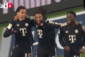 第87分鐘,奧利塞破門(mén),穆西亞拉助攻,拜仁5-1?!?/p>