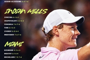 體育資訊3月30日訊 數(shù)據(jù)顯示,辛納不失一盤,連續(xù)奪得3座大師賽冠軍。