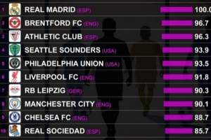 CIES評(píng)估球隊(duì)長期規(guī)劃表現(xiàn):皇馬第一,小蜜蜂第二,畢巴第三