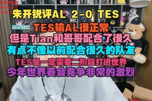 朱開賽后銳評銳評:TES輸AL很正常,但是Tian和哥哥配合了很久,有點不像以前配合很久的隊友,TES是一定需要二階段打進世界賽,今年世界賽會競爭非常激烈。