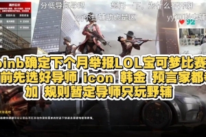 doinb:目前先選好導(dǎo)師icon、韓金、預(yù)言家都參加,規(guī)則暫定導(dǎo)師只玩野輔。