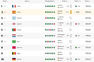西班牙因此遭到法國反超,跌至世界第2位,排名歐洲區(qū)第2。