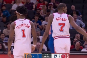 還得是你!杜蘭特追身三分命中 率隊(duì)穩(wěn)住局勢(shì)打停尼克斯