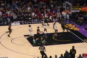 科林斯搶籃板和大洛撞到一起 膝蓋有點(diǎn)受傷回更衣室了