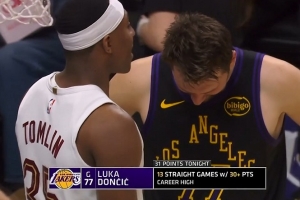 體育資訊4月1日訊 NBA常規(guī)賽,湖人對陣騎士,東契奇已經(jīng)得到31分。