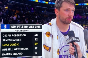 東契奇生涯第27次砍至少40分10助 歷史第三多&僅次于大O和哈登