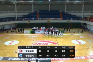 末節(jié)比賽,沈陽體院的表現沒有絲毫起色,前兩分半的時間里中國海大再打一波10-2的攻勢,分差直接突破四十分,比賽徹底失去懸念,最終中國海大100-66大勝沈陽體院。