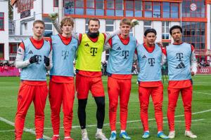 體育資訊4月2日訊 本周,拜仁主帥孔帕尼征召了多達12名青訓營小將參加訓練,隊長諾伊爾在社媒上發(fā)布了一張和5名小將合影的照片?!秷D片報》對這5名小將進行了介紹。