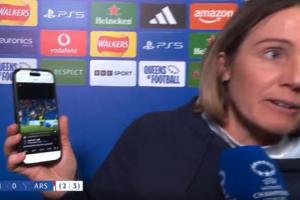 賽后接受采訪時,切爾西女足主帥邦帕斯托難以抑制心中的不滿,直接對著鏡頭展示回放視頻,并且表示:“在我看來,阿森納球員這是明顯的紅牌動作,她當時正在拉扯阿莉莎的頭發(fā)。”