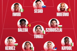 中場:巴萊巴(喀麥隆)、托納利(意大利)、索博斯洛伊(匈牙利)
